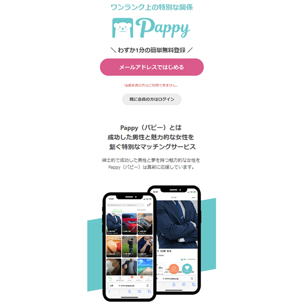 出会いに飢えた今どきの素人女子が集まるマッチング・出会い系サイトのPappy(パピー)。ポイントを購入して女性とメッセージ交換をしたり、いいねを送ってコミュニケーションをして好みの女性とお近づきになることができる番組です。月額料金が発生する有料会員になればメッセージのやりとりがし放題になるので、本格的に利用するなら絶対に有料会員になる方がコスパがいいのが特徴。手っ取り早くセフレを見つけたいのであれば最初から有料会員になってしまいましょう。デートしたい日や地域、女性の年齢やデートでしたいことなどの細かい条件で相手を絞り込めるので使い勝手が非常にいいと評判です。都合のいいセフレを効率よく探したい方には是非使って欲しい新しいマッチングサイトです。[18禁]